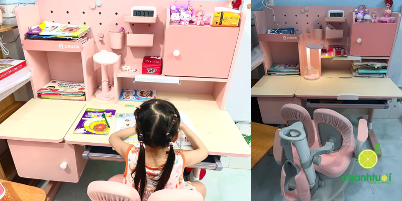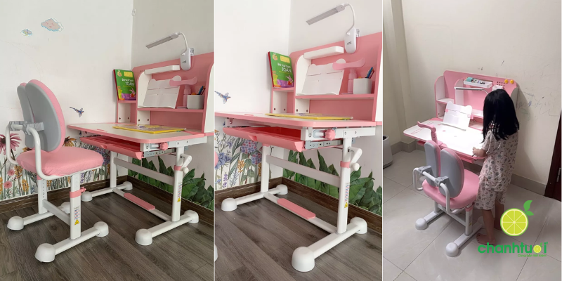 Ngoài ra, tính năng nâng độ cao của bàn cũng sẽ kéo dài thời gian sử dụng, tiết kiệm chi phí, bạn chỉ cần đầu tư 1 lần, sau này lớn lên, bé chỉ cần nâng độ cao là có thể tiếp tục sử dụng mà không lo bị sai tư thế.
