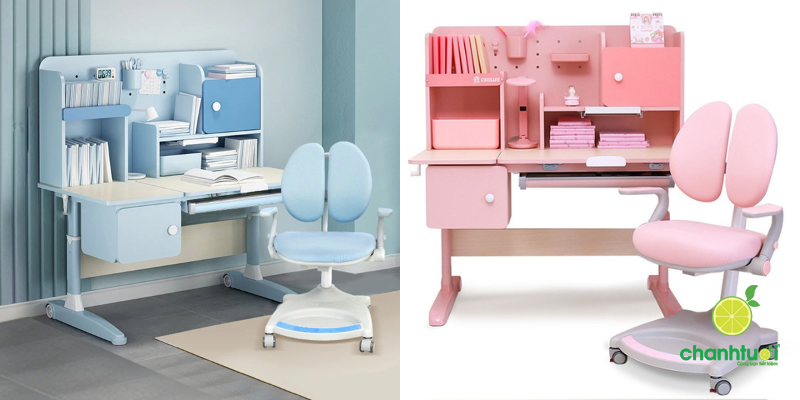 - Tối ưu không gian học tập: Nhiều mẫu bàn chống gù tích hợp kệ, ngăn kéo khoa học, giúp trẻ giữ thói quen gọn gàng hơn so với bàn học thông thường.