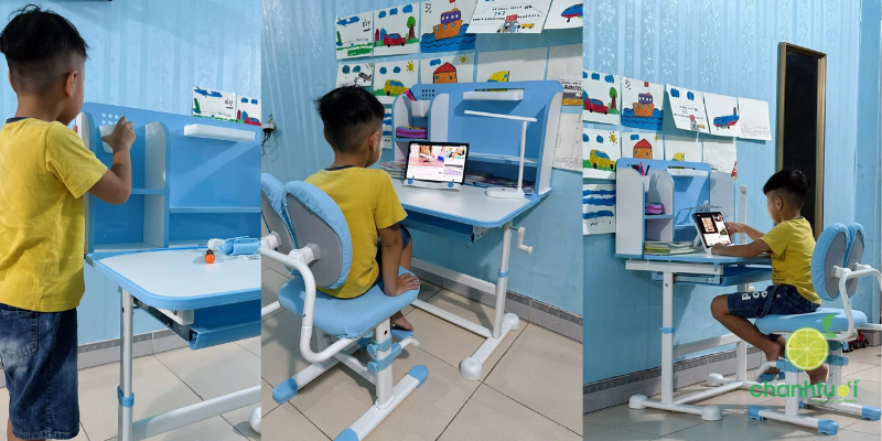 - Tạo môi trường học tập tích cực: Bàn chống gù giúp tạo ra môi trường học tập tốt, tạo cảm hứng cho trẻ yêu thích học hơn và tạo động lực để khám phá kiến thức mới.
