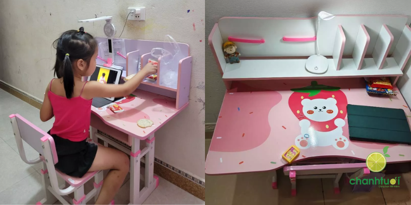 Không chỉ đảm bảo sức khỏe, bàn học với thiết kế thân thiện và màu sắc tươi sáng còn mang đến sự hứng thú, khơi g ợi tinh thần học tập mỗi ngày cho trẻ. Khi bé cảm thấy thoải mái và yêu thích không gian học tập, việc tiếp thu kiến thức cũng trở nên hiệu quả hơn.