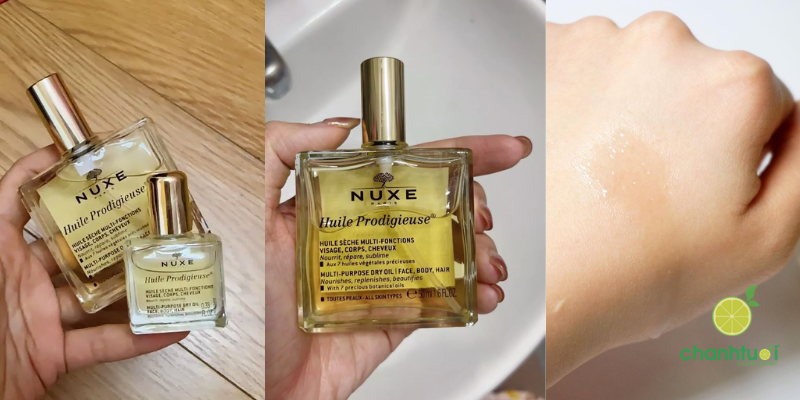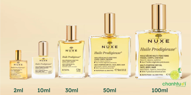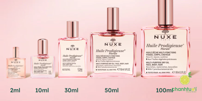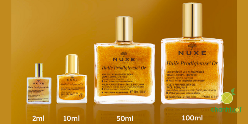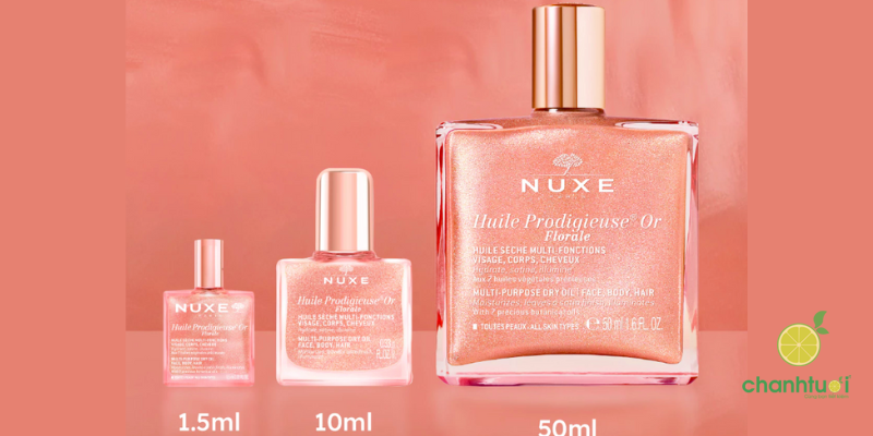 Bên cạnh thành phần và công dụng, thiết kế sản phẩm cũng là điểm cộng lớn. Các phiên bản Nuxe Huile Prodigieuse® đều được đựng trong chai thủy tinh trong suốt, sang trọng, hiện đại, mang lại cảm giác tinh tế ngay từ ánh nhìn đầu tiên. Ngoài ra, thương hiệu còn cung cấp nhiều dung tích khác nhau (thường từ 30ml, 50ml đến 100ml), giúp người dùng dễ dàng lựa chọn theo nhu cầu trải nghiệm hoặc sử dụng lâu dài.