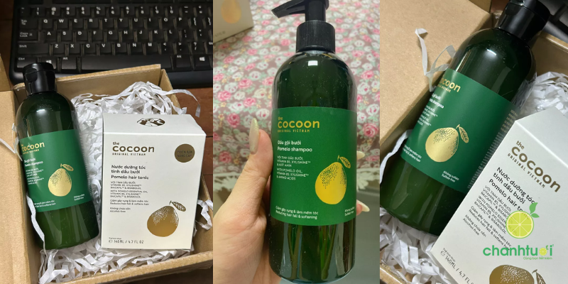 Trước khi dùng Cocoon, tóc mình khá khô xơ phần ngọn do uốn nhuộm, trong khi da đầu lại dầu nhanh, gội hôm nay mai đã bết. Sau hơn 2 tuần sử dụng đều đặn, mình thấy tóc giảm rụng rõ rệt, tình trạng bết cũng cải thiện – giờ mình chỉ cần gội cách ngày là ổn. Tóc trông dày và bồng bềnh hơn, độ bóng cũng tăng nhẹ, nhất là khi kết hợp với dầu xả cùng dòng.