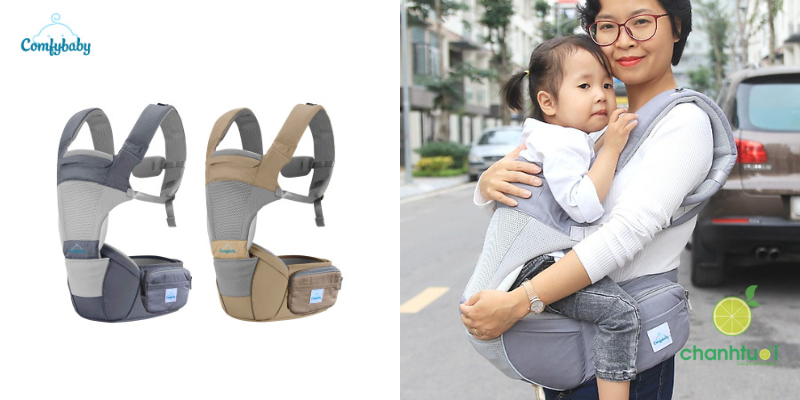 Nếu ba mẹ cảm thấy 3 dòng địu ngồi cho bé mình vừa giới thiệu ở trên có giá thành hơi cao thì ba mẹ có thể xem qua dòng địu ngồi bình dân của nhà Comfybaby. Điểm mình thích nhất chính là 4 tư thế địu linh hoạt: địu trước quay mặt vào mẹ (cho bé nhỏ cần cảm giác an toàn), quay mặt ra ngoài (khi bé cứng cổ, muốn khám phá), địu sau lưng (giúp ba mẹ đỡ mỏi khi bé lớn hơn), và tư thế địu ngồi với bệ đỡ hông hip seat cực kỳ tiện để bế bé nhanh, giảm áp lực lên vai và tay.