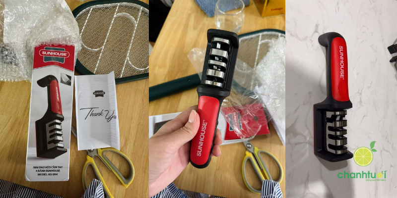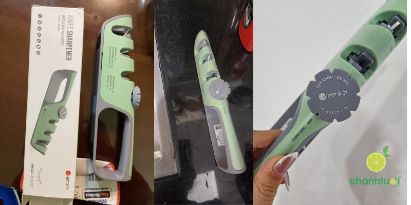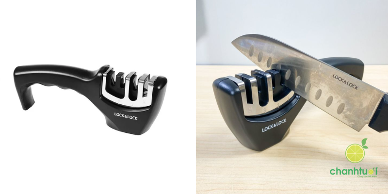 - Thiết kế khe mài chuẩn giúp giữ đúng góc dao, hạn chế trầy xước hoặc gãy lưỡi.