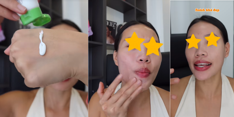 Tuy nhiên, sản phẩm này không hoàn hảo với tất cả loại da. Với mình, nếu không dùng kem dưỡng trước thì khi apply dễ bị vón hạt trắng ở một số vùng, đặc biệt là quanh mũi hoặc cằm. Ngoài ra, nếu lỡ lấy nhiều kem một lần thì khá khó tán đều, và cảm giác trên da hơi dính dính trong khoảng 5-10 phút đầu. Mình cũng thấy sản phẩm này không quá hợp cho những ai đang treatment mạnh, vì khả năng dưỡng ẩm chỉ ở mức vừa phải.