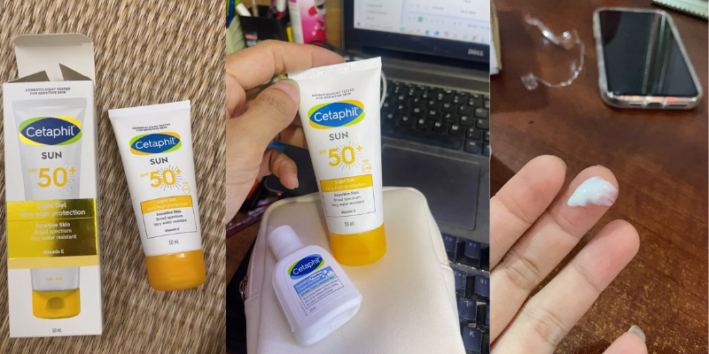 Kem chống nắng Cetaphil Sun SPF 50+ Light Gel là một dòng chống nắng vật lý lành tính, nâng tone nhẹ nhưng vẫn giữ được độ ẩm cho da. Em này dùng màng lọc vật lý Nano Titanium Dioxide 400 nên khả năng bảo vệ da trước tia UVA/UVB rất tốt, lại có thêm Vitamin E tinh khiết để dưỡng ẩm, làm sáng và hỗ trợ chống lão hóa. Mình thấy kết cấu của em này dạng gel nhưng thực tế khá giống sữa, loãng vừa phải, dễ tán, thấm nhanh và không để lại cảm giác bết dính.