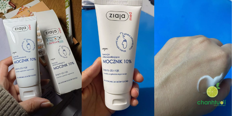 Urea 10%: dưỡng ẩm sâu, làm mềm da, loại bỏ tế bào chết, giảm sừng hóa da và giảm ngứa. Urea đặc biệt hiệu quả trong việc điều trị các tình trạng da khô, nứt nẻ, vảy cá, eczema.