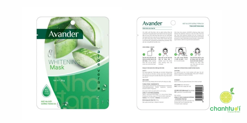 Mặt nạ giấy Avander chắc hẳn không còn là cái tên xa lạ đối với những tín đồ yêu thích chăm sóc da. Được mệnh danh là dòng mặt nạ quốc dân xuất hiện dày đặc tại các hệ thống siêu thị lớn, sản phẩm này gây ấn tượng bởi sự kết hợp giữa các thành phần thiên nhiên lành tính và mức giá cực kỳ dễ tiếp cận.