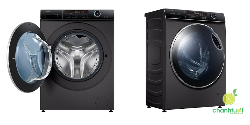 Máy cũng gây ấn tượng với loạt chế độ nhanh như Full Wash 45, giặt đầy tải trong 45 phút, hay giặt sấy 60 phút dành cho những ngày bận rộn. Công nghệ EcoInverter giúp tiết kiệm điện đáng kể, chạy êm và ít rung. Thiết kế cửa trước hiện đại, bảng điều khiển song ngữ dễ thao tác, lồng giặt thép không gỉ bền bỉ.
