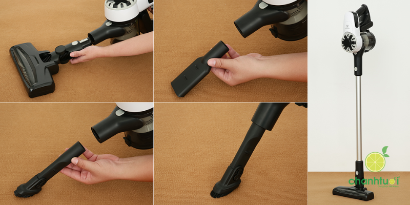 - Dùng đúng đầu hút cho từng bề mặt: Mỗi đầu hút được thiết kế riêng cho các loại sàn, thảm, khe nhỏ hay nội thất xe hơi. Sử dụng đúng đầu hút không chỉ giúp làm sạch hiệu quả hơn mà còn bảo vệ bề mặt cần vệ sinh.