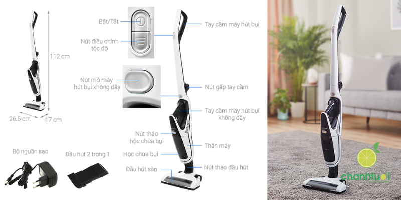 - Ưu điểm: Lực hút mạnh, có thể vệ sinh toàn bộ sàn nhà; thiết kế hiện đại, dễ cất giữ.