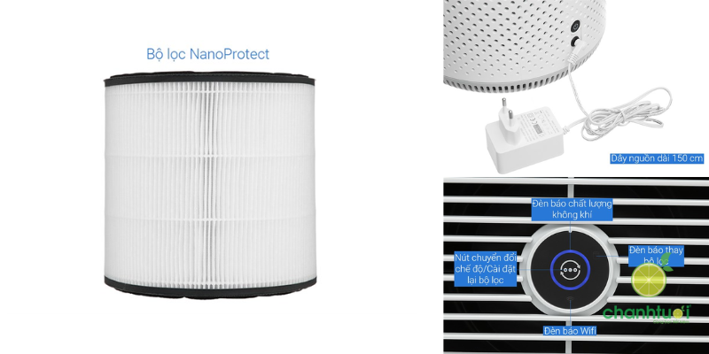 Màng lọc HEPA NanoProtect: Lọc bụi mịn, vi khuẩn, virus, chất gây dị ứng với hiệu quả cao.