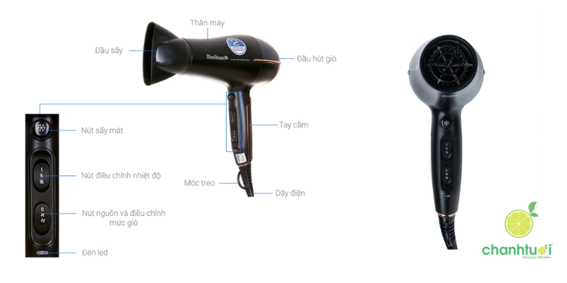 Thân máy được làm từ nhựa PA cao cấp, chịu nhiệt tốt, kết hợp với tay cầm thẳng gọn gàng, mang lại cảm giác chắc chắn và thoải mái khi sử dụng. Máy có 2 tốc độ gió, dễ dàng linh hoạt giữa gió nhẹ để sấy và tạo kiểu, hoặc gió mạnh để làm khô nhanh chóng. 3 mức nhiệt gồm gió nóng, gió ấm và gió tự nhiên giúp chăm sóc tóc theo từng nhu cầu, còn chế độ sấy mát đặc biệt hữu ích để cố định kiểu tóc và hạn chế hư tổn do nhiệt.