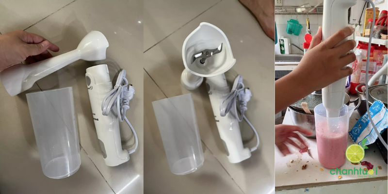 Mẹo nhanh: Sau khi xay xong, bạn có thể cho đầu xay vào cốc nước sạch, bật máy vài giây để tự làm sạch sơ bộ rồi mới rửa kỹ lại.