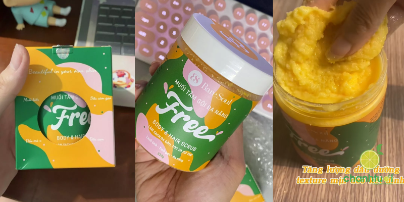 - BareSoul FREE Hair Scrub: Chứa 8 loại dầu thiên nhiên lành tính