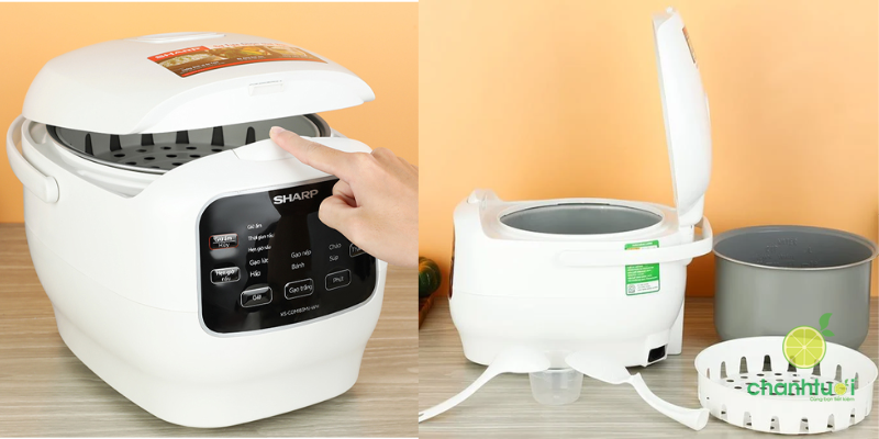 - Van thoát hơi: Hầu hết các dòng Sharp đều có van tháo rời được. Bạn nên tháo ra rửa hàng tuần để tránh cơm bị thiu do hơi nước cũ đọng lại.
