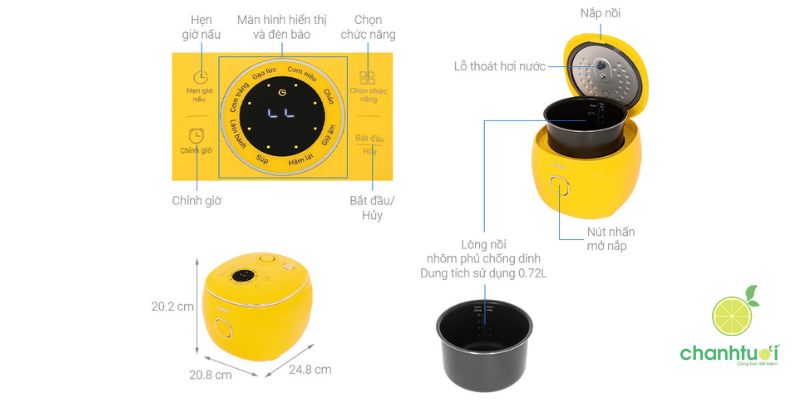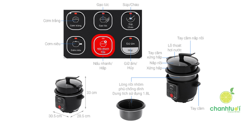 - Tính năng đa dạng như nấu nhanh, nấu mềm, hấp – nấu cháo, phù hợp nhiều món ăn khác nhau.