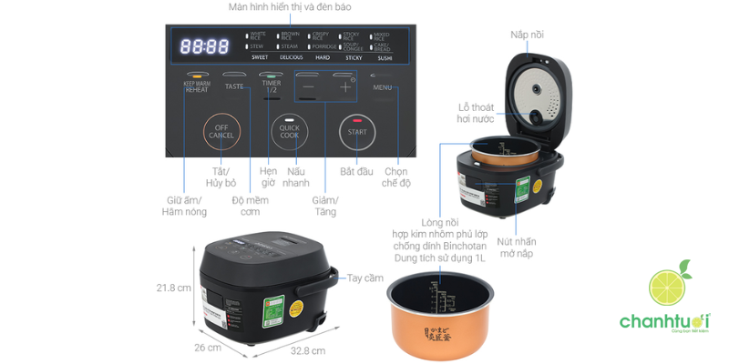 - Khả năng nấu: 8 – 10 cốc gạo