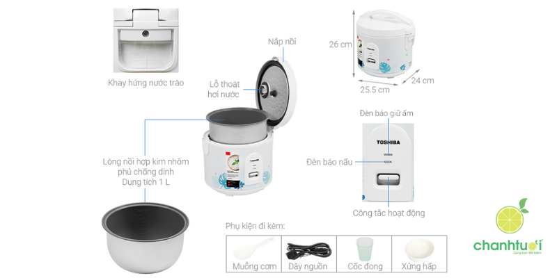 - Phụ kiện: Cốc đong gạo, muỗng xới cơm, xửng hấp