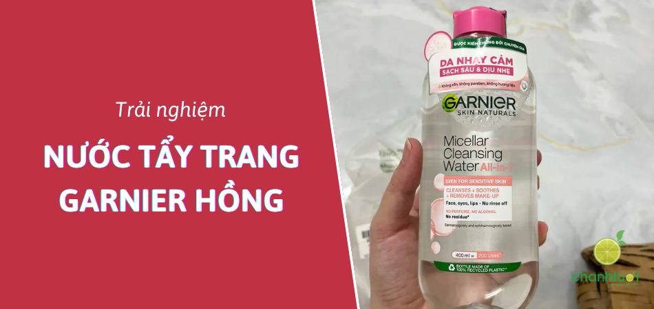 Tuy nhiên, ở nước ta loại tẩy trang Garnier nắp màu hồng đậm không phổ biến bằng dòng nắp hồng nhạt. Khi nhắc đến tẩy trang Garnier màu hồng người dùng thường nghĩ đến loại nắp hồng nhạt Garnier Micellar Cleansing Water Sensitive Skin hơn - Loại được review trong bài viết.