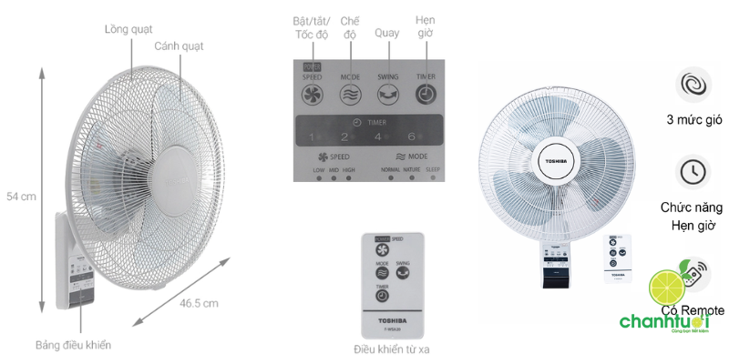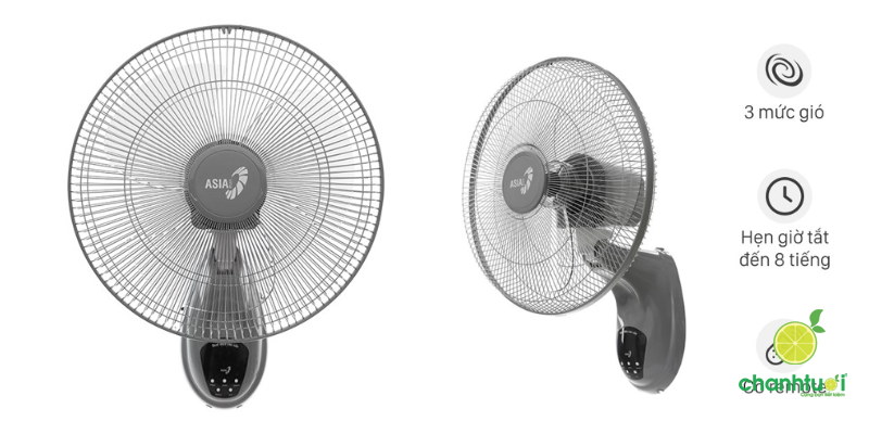 Quạt treo tường thường có 3 hoặc 5 cánh (2 cánh ít phổ biến).
