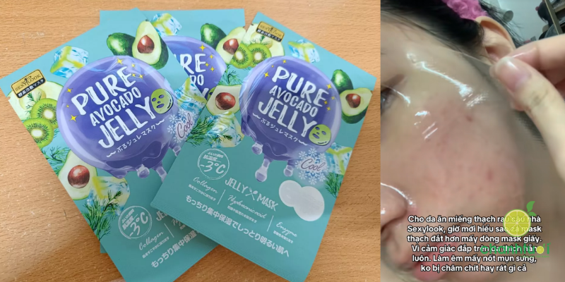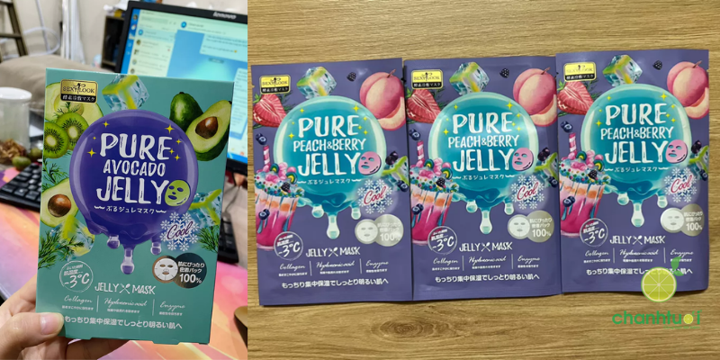 - Mặt nạ jelly Bơ dịu mụn: Chiết xuất trái cây lên men tổng hợp, chiết xuất tảo biển, Bơ hạt mỡ,…