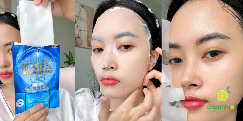 Điều mình ấn tượng nhất ở dòng mặt nạ này là kết cấu thạch trong, mỏng, không bị dày nên giúp mask ôm sát khuôn mặt mà không bị trượt hay nhăn nheo như nhiều loại khác. Lượng tinh chất vừa đủ và kết cấu cũng thấm nhanh, không cần rửa lại mặt sau khi đắp.