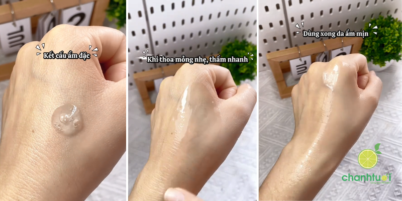 - Da khô/lão hóa: Có thể chọn kết cấu hơi sệt hoặc dạng gel đặc hơn một chút để giữ độ ẩm trên da lâu hơn.