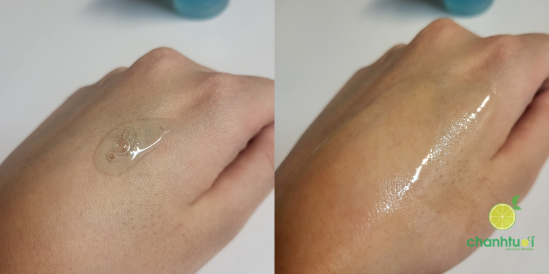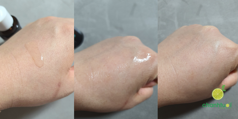 Serum có kết cấu lỏng vừa, màu tím, thấm nhanh, khi thoa tạo cảm giác ẩm mượt nhưng không nhờn dính. Trên da hỗn hợp đến da dầu, sản phẩm vẫn dễ chịu, không gây bí nếu dùng lượng vừa phải. Khả năng cấp ẩm ở mức đủ dùng hàng ngày, giúp da mềm và căng nhẹ ngay sau khi thoa.