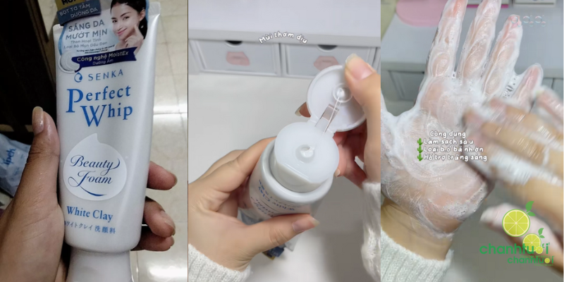| Senka Perfect Whip White Clay | Trắng | Da dầu, da hỗn hợp, da thường | ~8.5–9 | Hút dầu thừa, làm sạch sâu với đất sét trắng | Kiểm soát dầu & làm sạch lỗ chân lông tốt | Có mùi hương hơi nồng, dễ khô căng nếu không dưỡng | ~105.000–125.000đ |