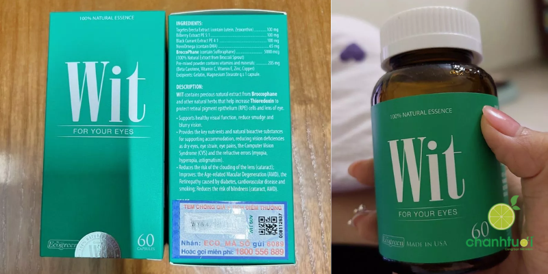 Thuốc bổ mắt WIT là viên uống bổ mắt xuất xứ từ Mỹ, nổi bật nhờ sự kết hợp giữa thảo dược thiên nhiên và các vitamin, khoáng chất tốt cho thị lực.