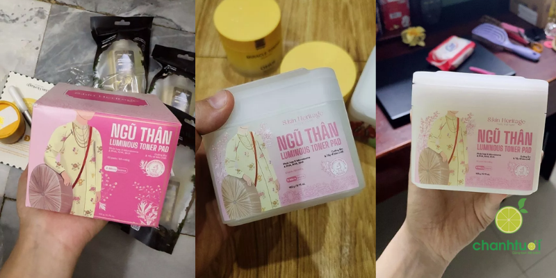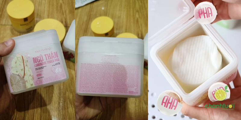 Điểm mình dành lời khen cho toner pad Skin Heritage là cách đặt tên, chi tiết nhỏ nhặt trong thiết kế sản phẩm mang màu sắc văn hóa dân tộc. Không chỉ tên gọi các loại áo: Ngũ Thân, Tứ Thân, Nhật Bình, mà còn là số lượng 63 miếng toner pad tượng trưng cho 63 tỉnh thành.