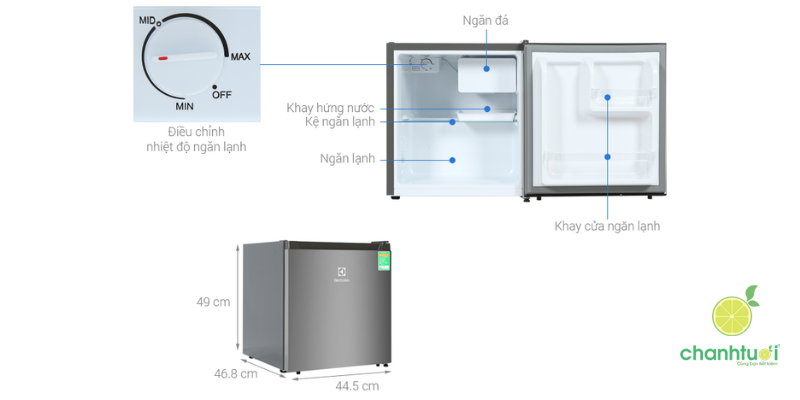 - Dưới 50 lít: Phù hợp cho sinh viên, người độc thân, hoặc dùng để lưu trữ mỹ phẩm, thuốc.