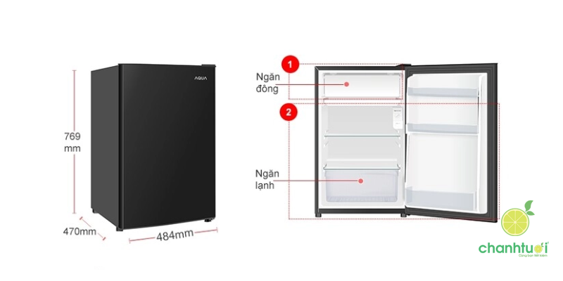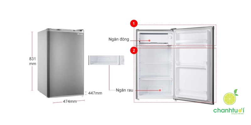 - 50- dưới 100 lít: Lựa chọn tốt cho 2 người, đủ để chứa thực phẩm, đồ uống cơ bản.